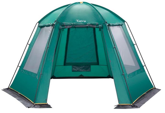 Тетра палатка - каркасный тент-беседка с большим внутренним пространством и тремя входами с разных сторон. Отличная защита от насекомых для рыбака или дачника, может использоваться как летняя кухня, беседка, спальня или склад, при этом спасет ваш отдых от солнца, легкой непогоды и насекомых.