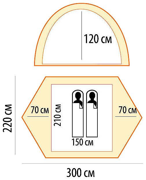 Tourist 2 палатка 11 - легкая двухслойная трекинговая палатка с двумя входами и увеличенным тамбуром для использования в весеннее, летнее и осеннее время.