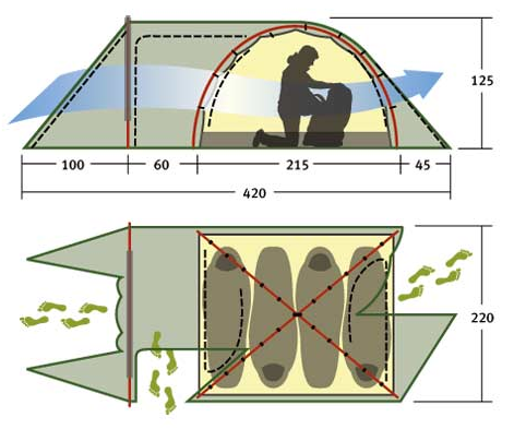 • Большой тамбур для вещей, велосипедов или походной кухни.