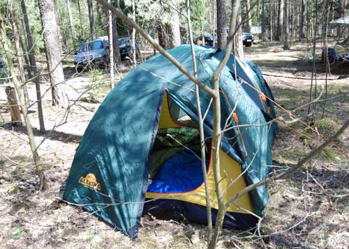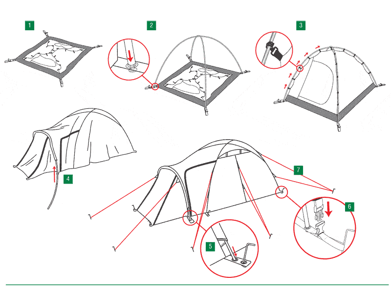 • Узлы палатки, испытывающие высокие нагрузки, усилены более прочной тканью.