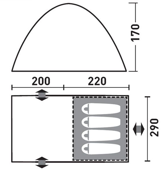 Трим 4 палатка - комфортная кемпинговая палатка с двумя входами и большим тамбуром, можно использовать без растяжек.