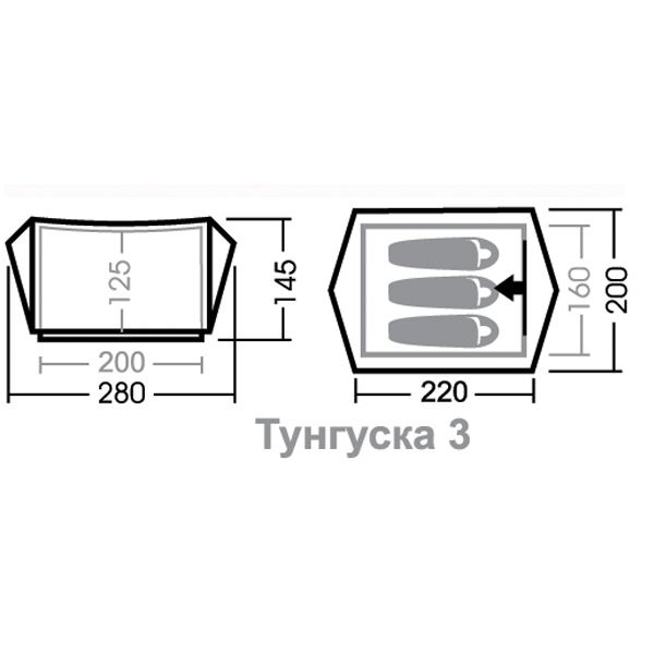 Тунгуска 3 палатка Современный дизайн при классических формах. Компактна, проста в эксплуатации. Благодаря повышенной водонепроницаемости дна и проклеенным швам, надежно защитит от дождя. Возможна установка без стоек и установка тента отдельно от палатки.
