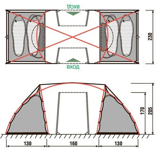 Weekend 4 палатка - двухслойная кемпинговая палатка с двумя спальнями и большим тамбуром с двумя входами. Две отдельные спальни позволят комфортно расположиться двум компаниям, а тамбур с козырьком послужит как кухня, столовая, склад вещей и багажа, увеличить полезную площадь под эти нужды позволит установка палатки без спален.