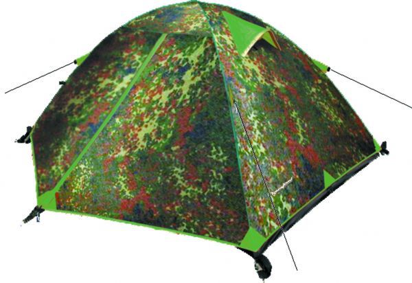 Peak 3 Camo палатка - недорогая и практичная двухслойная палатка с одним входом и одним тамбуром.