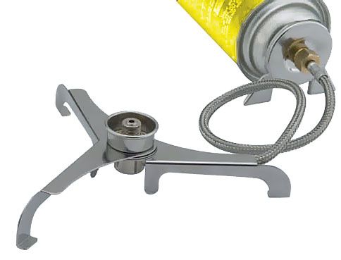 Переходник со шлангом - переходник с резьбового стандарта на цанговый баллон в пластиковом футляре. Позволит использовать цанговые баллоны, которые ощутимо дешевле резьбовых, на всех видах резьбовых горелок и ламп.