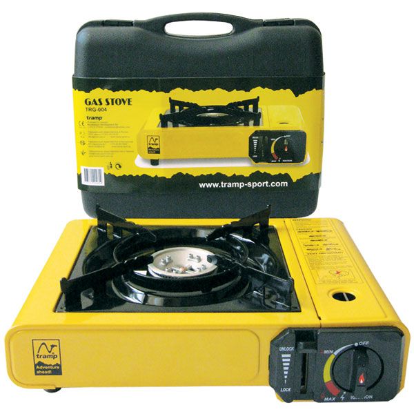 Плита газовая в кейсе с переходником под большой баллон TRG-006 - портативная одноконфорочная газовая плита, может работать как от цангового баллона, помещающегося внутрь, так и от большого газового баллона благодаря переходнику.