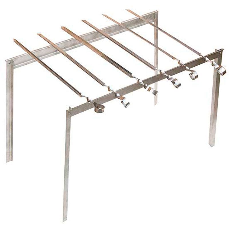 Подставка под шампура нерж. сталь - малогабаритная и легкая альтернатива мангалу. Подставка из уголка нержавеющей стали легко устанавливается в землю и может использоваться для приготовления любых блюд на костре и углях - запекания мяса, овощей и рыбы, разогревания готовой еды и приготовления напитков, а особенно для приготовления шашлыка, чему служат выемки для фиксации шампуров. Благодаря компактности в собранном виде не займёт много места, легко моющаяся нержавеющаяся сталь не доставит много хлопот в походе, на даче и пикнике, на рыбалке и охоте. Шампура в комплект не входят.