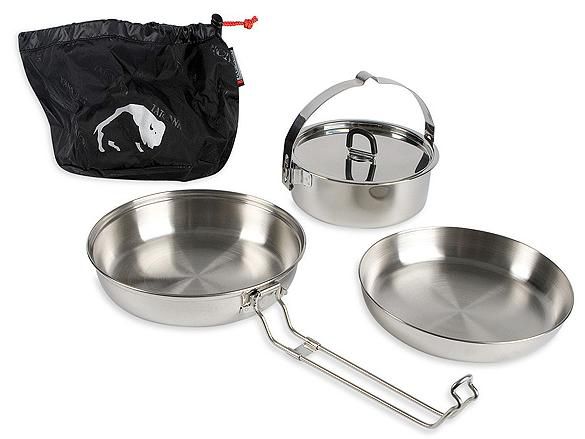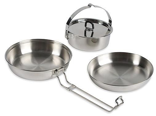Camp set Regular набор посуды - компактный набор походной посуды, которая складывается друг в друга как матрешки. Посуда сделана из высококачественной стали, которая легко моется, прочна и долговечна.