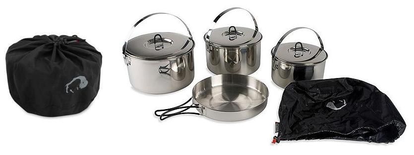 Family Cook Set S походный кухонный набор посуды для семейного отдыха из высококачественной стали, которая легко моется, прочна и долговечна. Имеется чехол-сумка для удобного хранения и транспортировки набора.