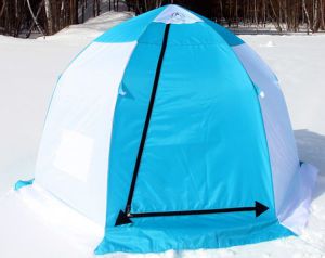 Пингвин 2 зимняя палатка - легкая двухместная однослойная палатка для надледной рыбалки, в которой можно расположиться с вещами и оборудовать 2-3 лунки, при этом её легко перемещать, не собирая.