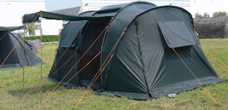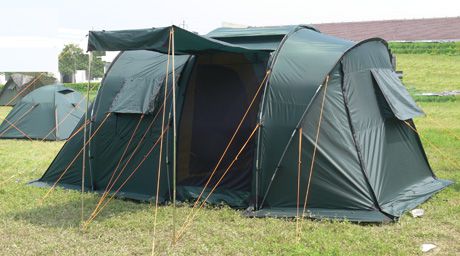 •  Два основных входа в палатку с дополнительными антимоскитными сетками и вентиляционным окном и два с торцов палатки также с вентиляционными окнами.
