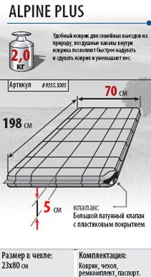 Самонадувающийся коврик Alpine Plus от Alexika с увеличенной шириной (до 70 см), позволит комфортно отдохнуть на природе. Специальные воздушные каналы внутри уменьшают вреям надувания и сдувания, а так же экономят вес Вашего рюкзака.