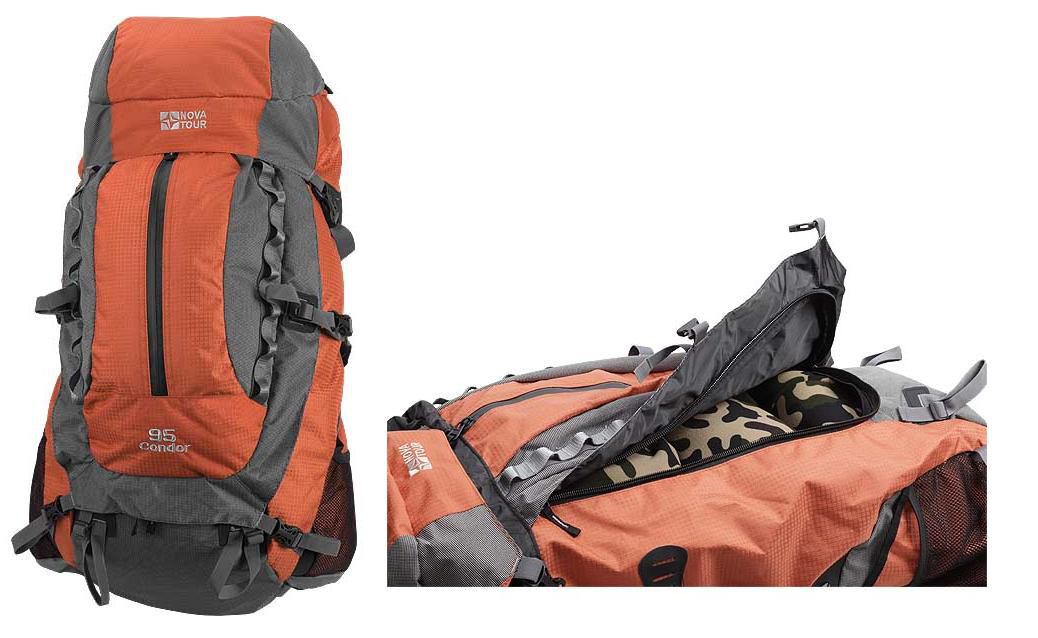 Кондор 95 рюкзак - объемный туристический рюкзак с двумя отделениями. Очень вместительный благодаря возможности увеличения объема за счет тубуса и крепления дополнительного верикального груза, а так же благодаря прнципиально новому входу - молния входа проходит по всей передней части рюкзака и раскрывает рюкзак практически как чемодан.