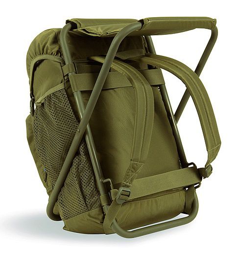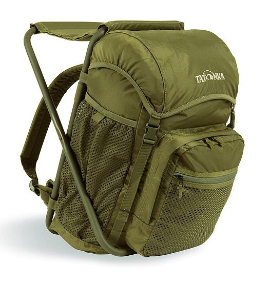 Tatonka Fischerstuhl стул-рюкзак - прочный, удобный и легкий функциональный рюкзак со стулом специально для рыболовов и охотников, позволяет ставить стул даже на неровные поверхности и всегда держать под рукой необходимые снасти и мелочи. Стул крепитcя к рюкзаку стропами и легко снимается.