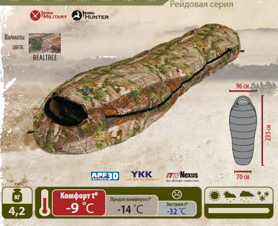 Mark 70SB спальный мешок - низкотемпературный спальник-кокон с увеличенным объемом утеплителя для зимней охоты и использования в любых погодных условиях.