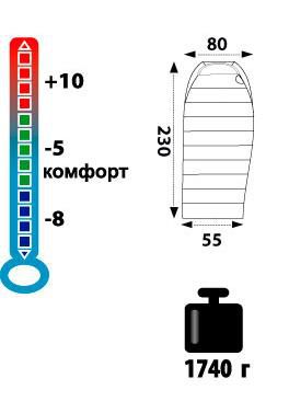 • Полиэстер 190T - высокопрочный  материал, надежно защищает спальный мешок от влаги и повреждений.
