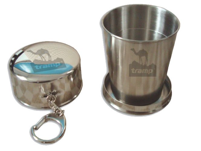 Стакан складной TRC - 068 - благодаря карабину можно повесить на ремень.