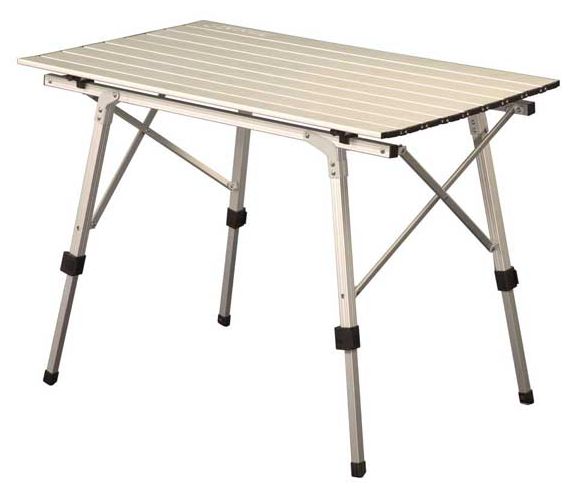 FT-4 стол складной из алюминия с регулируемой высотой столешницы; ножки регулируются для устойчивости на неровной поверхности. В комплекте компактная сумка для хранения и переноски.