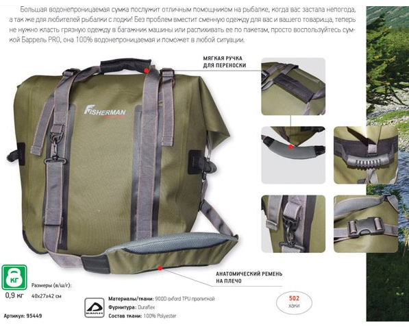 Баррель PRO сумка - вместительная полностью водонепроницемая сумка, незаменимое подспорье для рыболовов и охотников.
