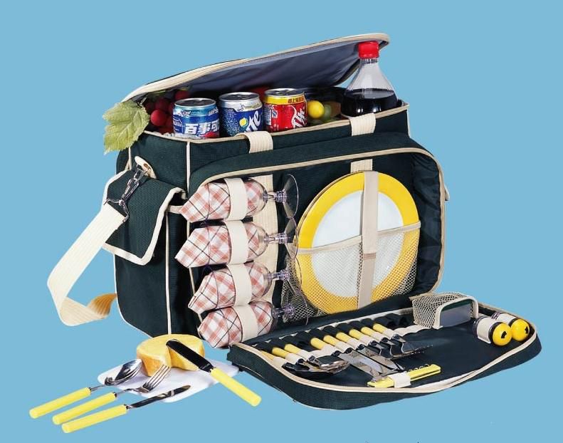Набор для пикника Green Glade T3134 - удобная для транспортировки и переноски сумка с наплечным ремнем и карманами по бокам и спереди, компактно вмещающая всё необходимое для пикника на природе: большое изотермическое отделение объемом 30л (свежесть продуктов до 12 часов при использовании с аккумуляторами холода) и набор посуды на 4 персоны.