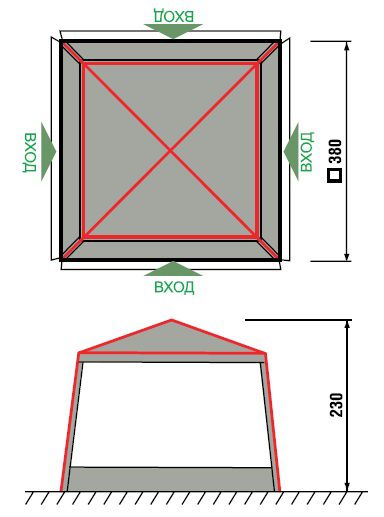 • Стенки из антимоскитной сетки дублируются непромокаемой тканью