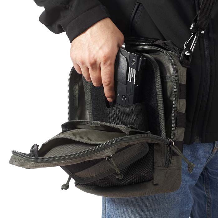 - Возможность крепления универсальной кобуры либо на внутреннюю съемную панель, либо во внутреннем кармане